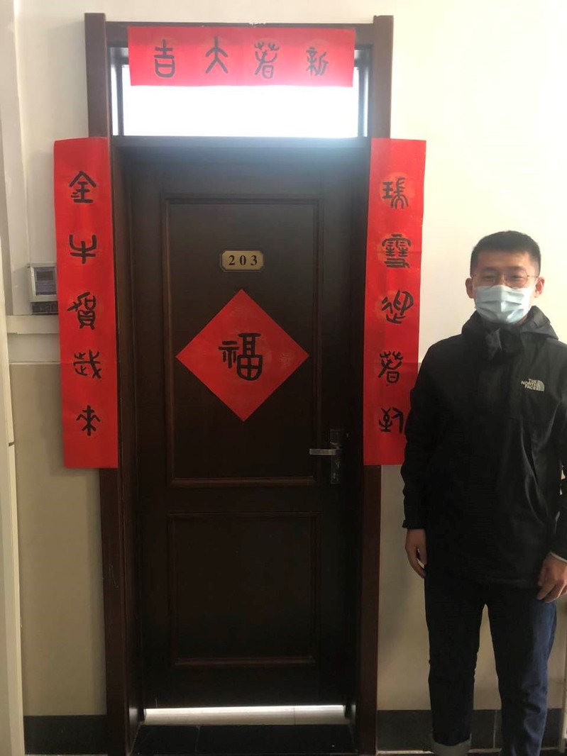 根据当前疫情防控需要,学院一名家住黑龙江省望奎县的研究生,家人是疫情防控一线的医务人员,暂缓回家,留校居住。公司党委一行人来到员工寝室,了解当前生活情况及学业进展,提醒该同学注意防寒保暖,提升安全防护意识,保持与家人沟通联系,并鼓励其充分利用假期时间努力钻研,多出成果。李奇涵代表公司党委为该同学送上春节的慰问品和新春祝福,并请他转达学院对其家人抗击疫情辛苦付出的敬意和感谢。